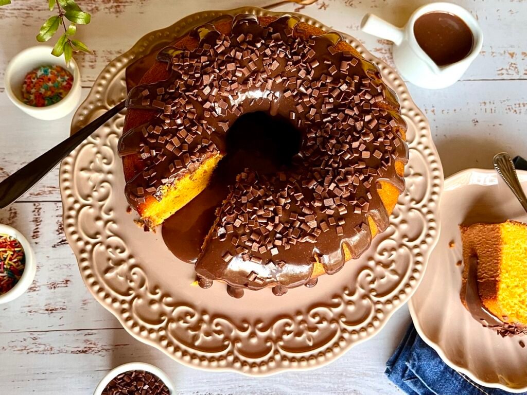 ReceiteriaQuando o bolo estiver morno, desenforme e despeje a cobertura por cima;