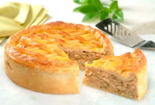 - ReceiteriaTransfira a massa para a forma. Coloque as nozes por cima, dando uma leve apertadinha para elas afundarem um pouco. Leve ao forno preaquecido a 180 ºC por 30 minutos, ou até formar uma casquinha;